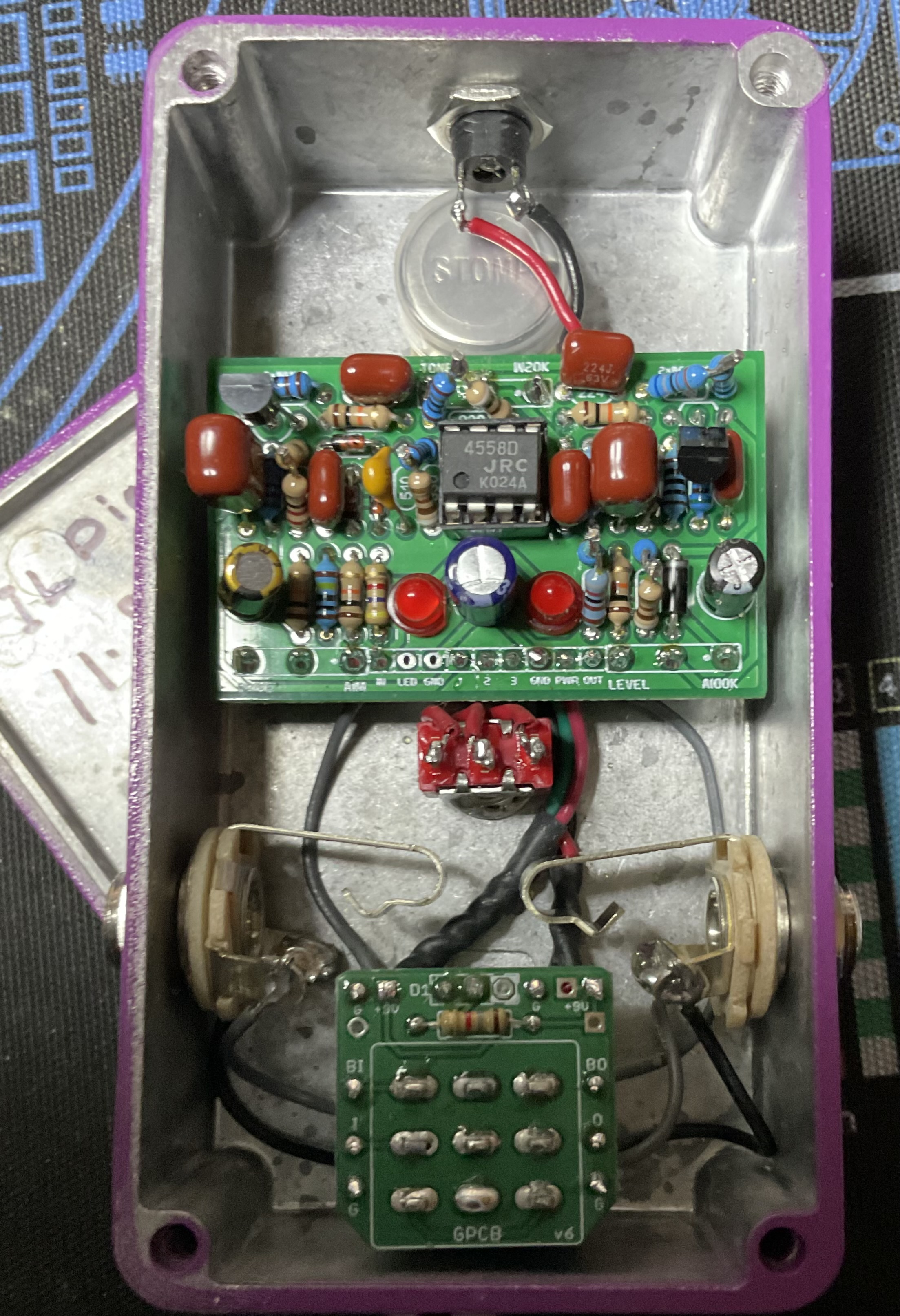 Your Source for DIY Pedal PCBs and NostalgiTone! › GuitarPCB Forum › Show Off Your Build › IL Diavlo This topic has 1 reply, 2 voices, and was last updated 2 days, 15 hours ago by Barry. Viewing 2 posts - 1 through 2 (of 2 total) Author Posts November 8, 2025 at 2:12 pm #37843 CrumpredParticipant In her bare purple glory, thank you ma’am … I’ll have another! Loads of fun to be found with this circuit. While I prefer Switch 2 (center), position 3 (left) gives me a duck face quack. Clean to crackle it rolls with my punches. November 9, 2025 at 11:31 am #37848 BarryKeymaster Awesome! Glad you like it. Thanks for posting. Author Posts Viewing 2 posts - 1 through 2 (of 2 total) You must be logged in to reply to this topic. Log In Username: Password: Keep me signed in Log In